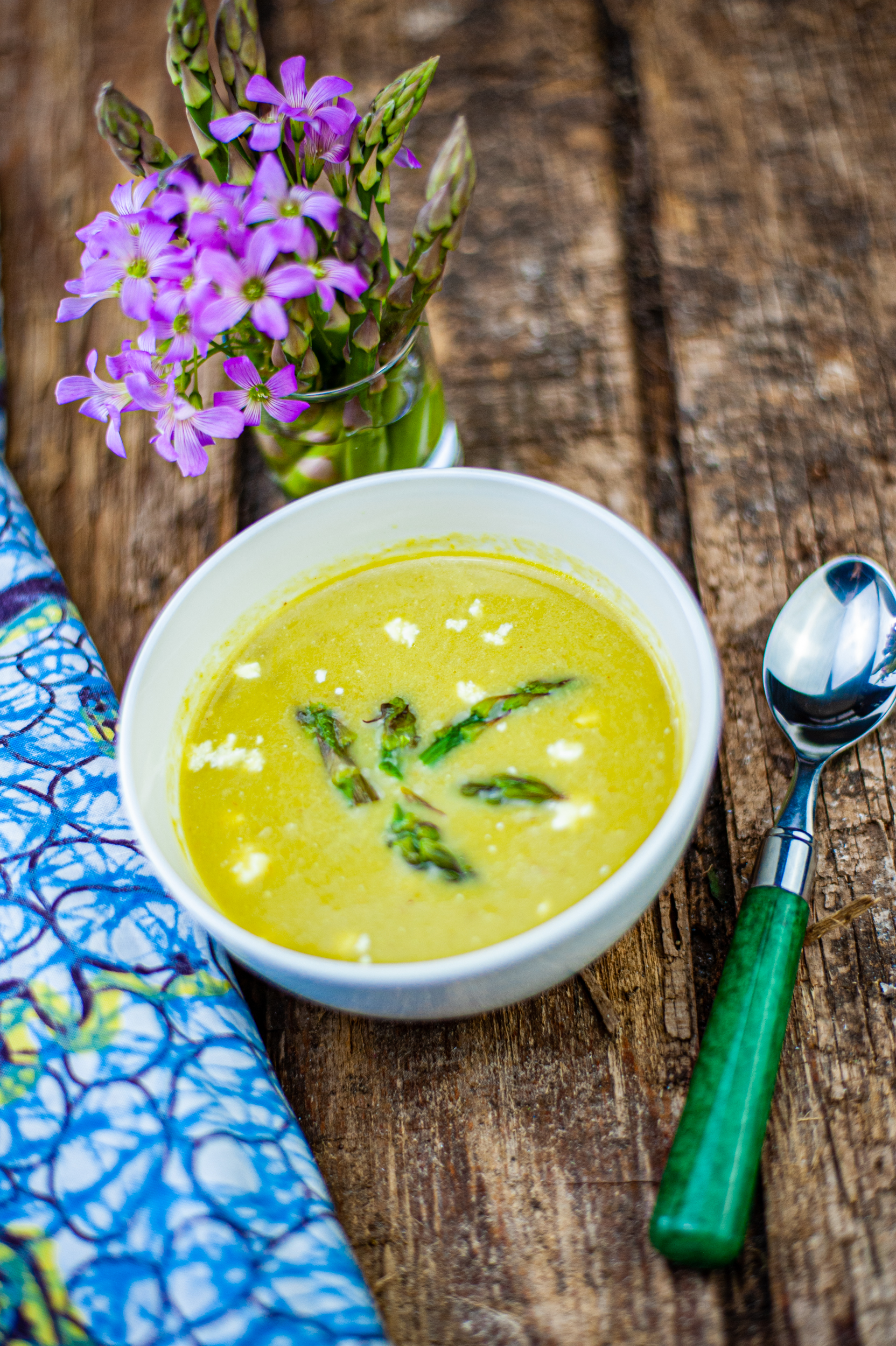 - Garnish with roasted asparagus heads, vegan feta, and whatever your heart desires.